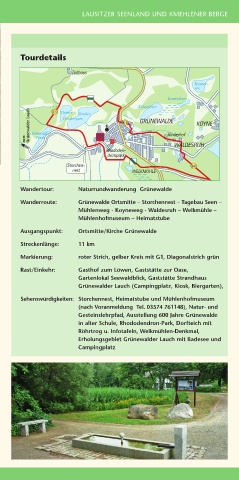 Wanderroute: Grünewalde Ortsmitte – Storchennest – Tagebau Seen –